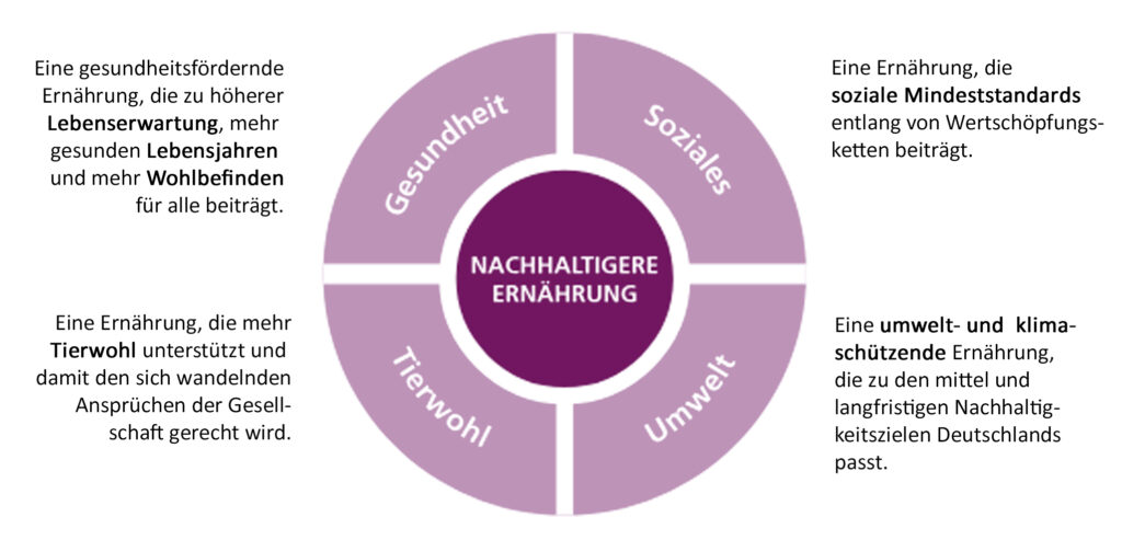 Der Bericht umfasst 14 Kapitel, die sich aus unterschiedlichen Perspektiven mit der Ernährung in Deutschland auseinander setzen (von der allgemeinen Ernährungslagen, der Situation in armutsgefährdeten Familien, er adressiert den Nutriscore, alternative Proteinformen, ultra hoch verarbeitete Lebensmittel und Mikroplastik, zudem betrachtet er die Ernährungssituation außer Haus und in Pflegeeinrichtungen). Die zentralen Fragestellungen jeweils sind aber immer: dient es unserer Gesundheit und ist es nachhaltig? Hier betrachten wir nur einige dieser Aspekte.